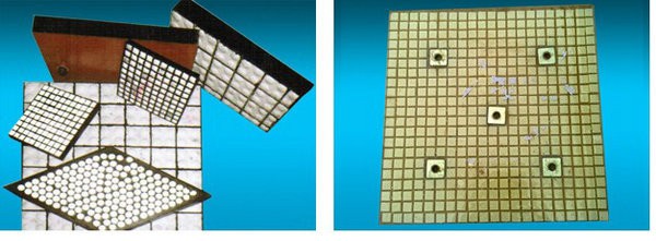 The impact-resistant wear-resistant ceramic rubber composite lining board is a mosaic ceramic embedded in special rubber through rubber vulcanization technology to form a square ceramic rubber composite, which is adhered by welding (triple series) or high-strength adhesive (two In one way) It is fixed on the protective surface of the equipment to form a strong and cushioning wear-resistant layer, which greatly expands the use of alumina ceramics. The products are widely used in coal transportation, ash discharge systems of thermal power plants and materials, batching silos, hoppers and other equipment in the metallurgical iron and steel industry, which effectively solves the problem of low service life of the batching conveying system due to the large material drop and strong impact At the same time, the ceramic rubber composite liner can be twisted and cut, which is suitable for the installation of various special-shaped equipment.